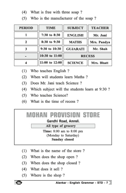 ENGLISH GRAMMAR | STANDARD-7